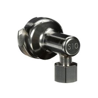 Description: #S10 Adapter, 1/4 in - 19 TPI BSP R-Angle (Female), Use With: Series 2.0 Spray Cup System.