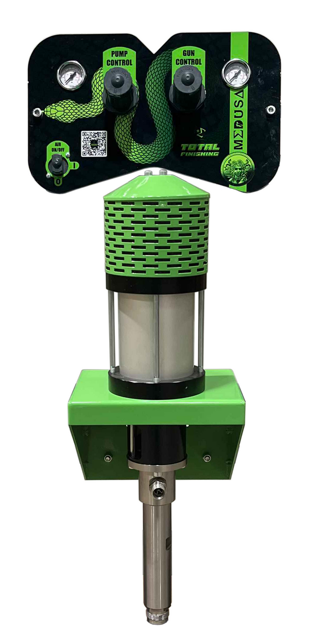 Description: Introducing the Medusa™ 30:1 High Pressure Piston Pump, the latest advancement in our Total Finishing lineup. This versatile pump is available in configurations for both Airless and Air Assisted Airless applications. Built for durability, it features a robust air motor and tungsten carbide paint valves, ensuring minimal maintenance and exceptional longevity.