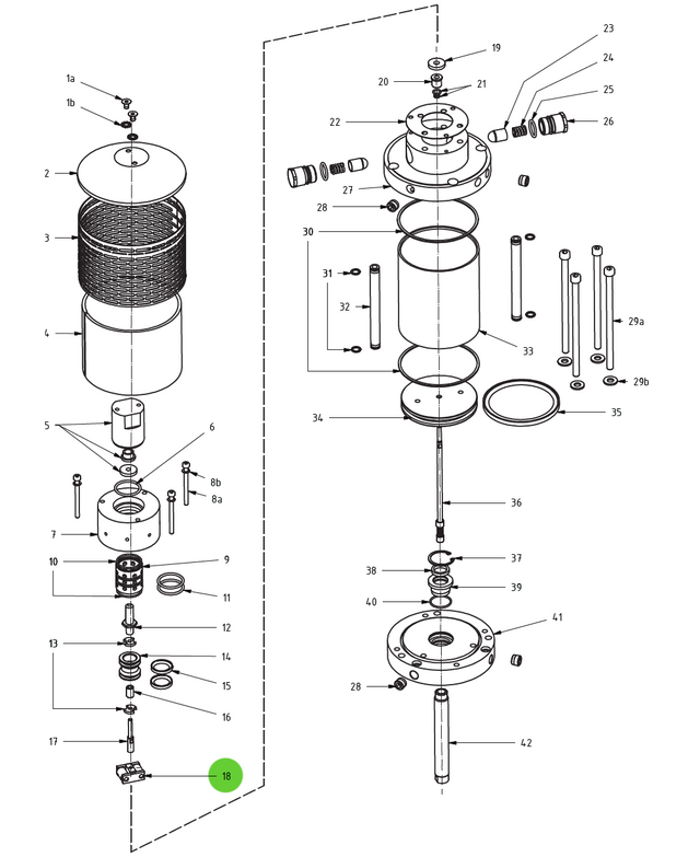 Description: Pilot Valve Block #18 for the Medusa™ high pressure piston pump.