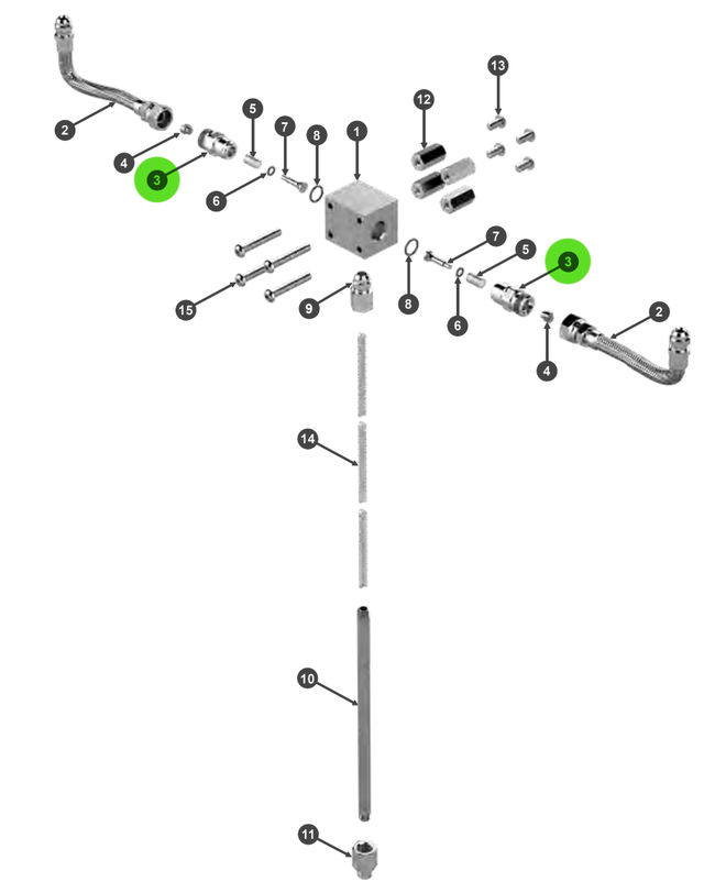 Description: Body Check Valve, Medium Pressure, 3/8”. For use with Ransburg Intelliflow RM2 medium pressure units.