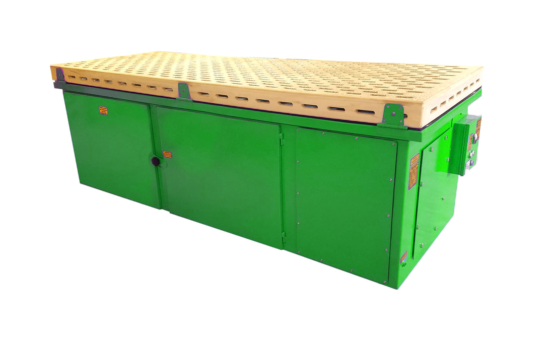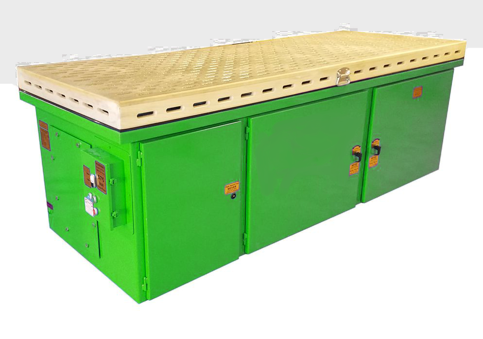 This model is ideal for medium and large-sized jobs and is accommodating for two or three jobs going on at the same time on the same table. The 3696B is one of the larger tables in Denray's push-button cleaning line. This model comes standard with 80/20 cartridge filters which clean with a 99.95% capture rate at .5 micron, along with a magnetic starter and rubber-coated top.