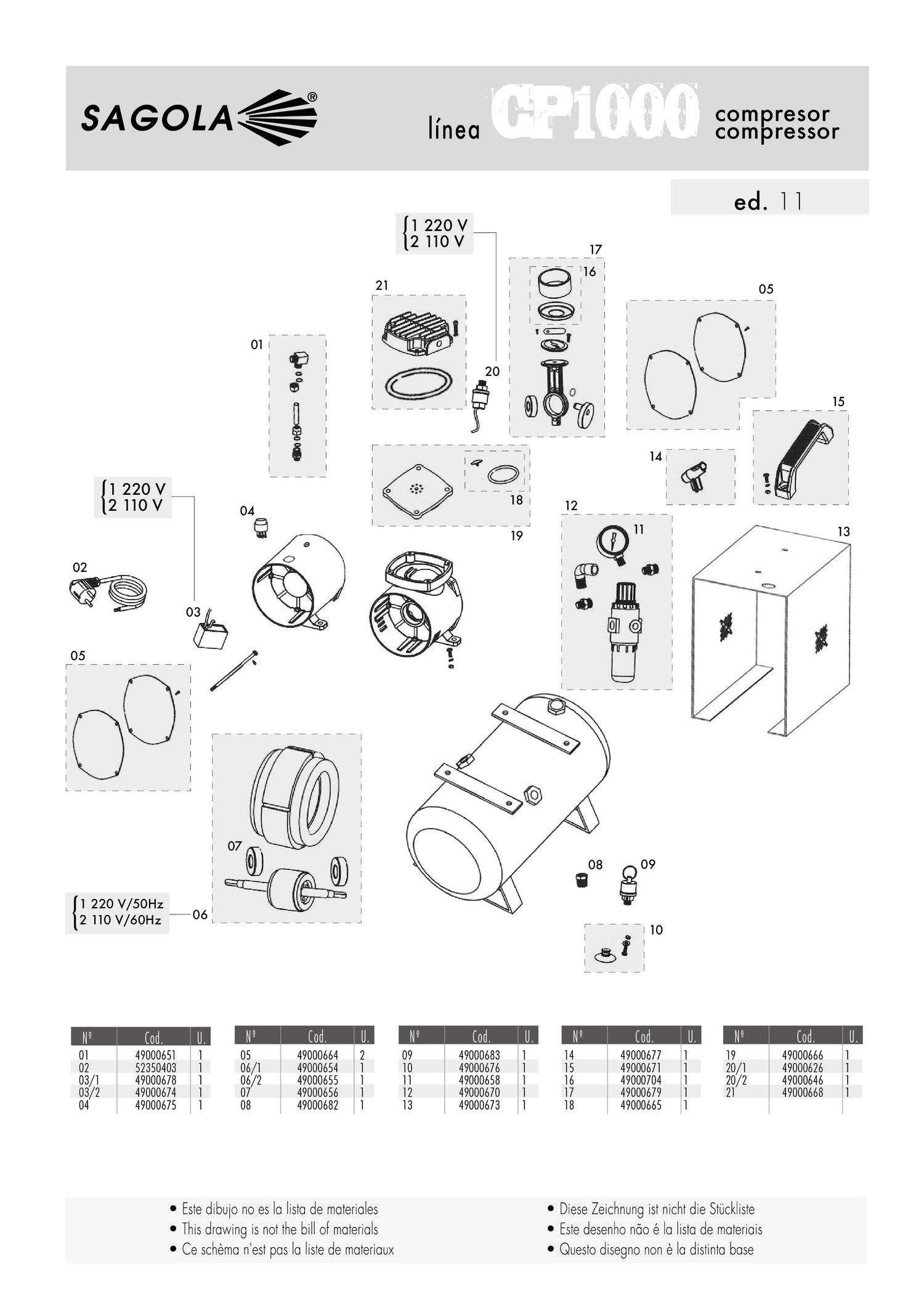 Sagola CP 1000/2000 - Cover Head Valve Parts Kit