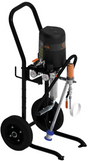 Description: 25:1 Ratio vertical bellows pump. Cart mounted (wall mounting included). Includes air and product hose (23ft.), suction hose, and fluid regulator.