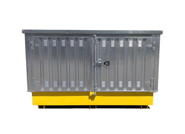 The Ultra-Twin IBC Hard Top, Steel Model provides enough containment capacity to meet the regulations while also providing strong and secure housing to protect hazardous and/or flammable contents from fire, heat, and unauthorized access.