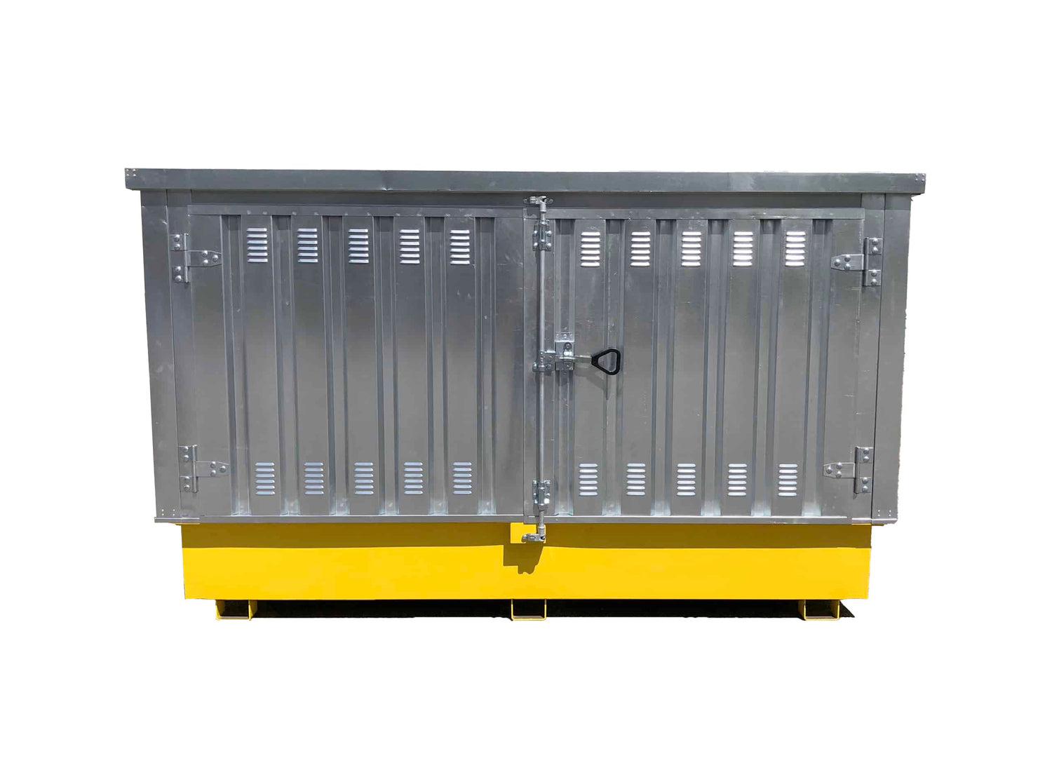 - Storage and spill containment for one or two IBCs (intermediate bulk containers), tanks or totes.