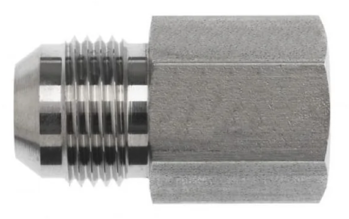 Description: Male #5 JIC/AN to 1/4" Female NPTF Adapter, straight, stainless steel.