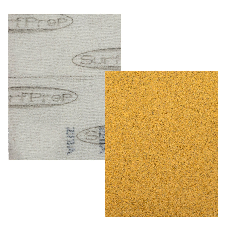 SurfPrep's blended paper backing provides for enhanced support of grain and edge-wear, Our premium abrasive grain in an open coat construction provides a true, consistent & uniform scratch. Innovative ‘load-free’ coating provides for a fast rate of cut and longer life.