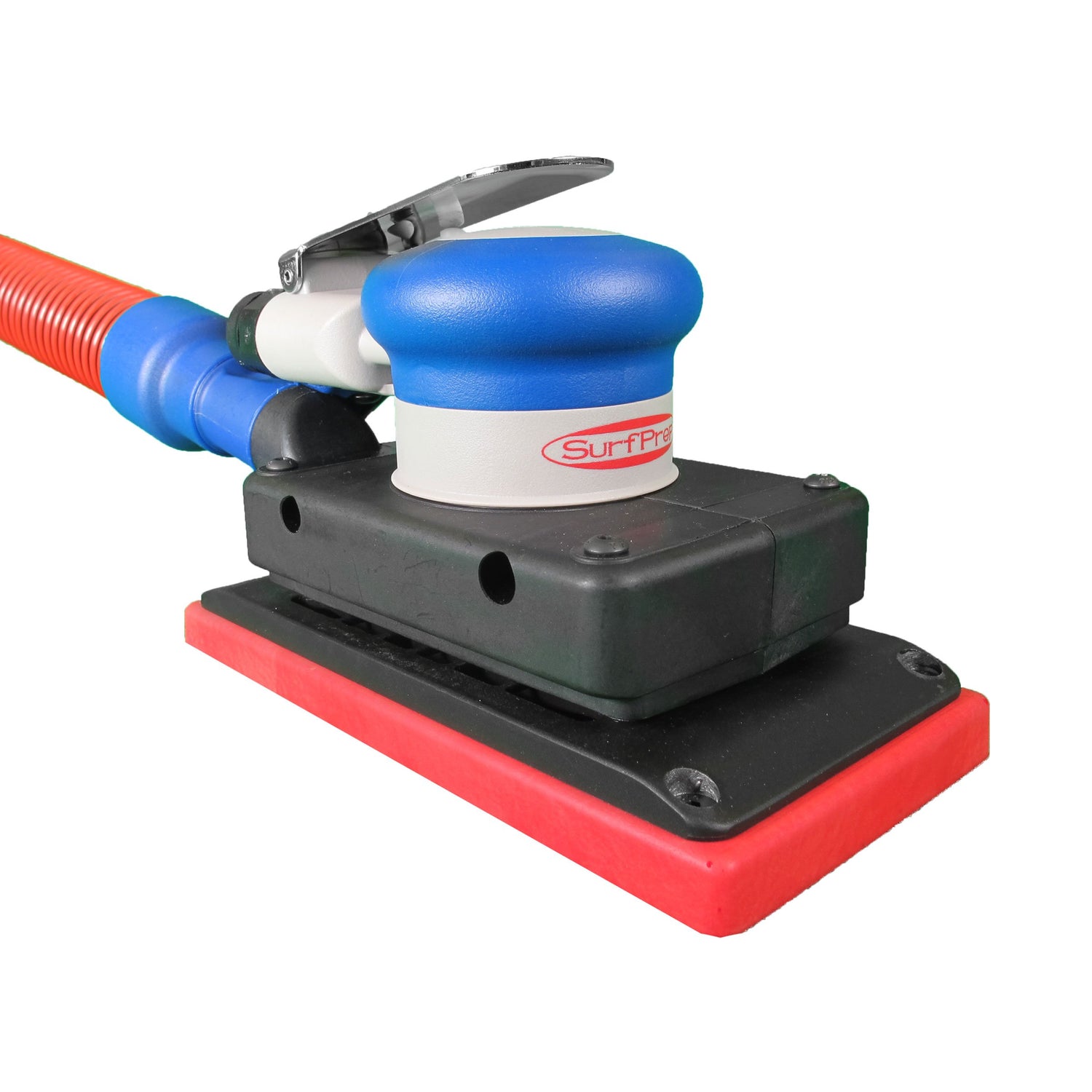 SurfPrep’s 3 2/3” x 7” Storm Air Sanders have a low profile, large footprint designed for use on flat surfaces, recessed corners, large areas & profiled moldings, etc. The durable, lightweight nylon composite bodied sanders withstand rugged industrial applications and are excellent for both prep & finish sanding. Both the Air and Electric Surge can be converted into a more “aggressive leveling sander” with the simple addition of a pad saver with SurfPrep Film cut sheets. All OEM parts are available.