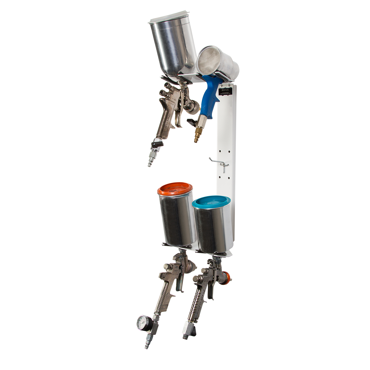 - Soft-edge guard on gun hangers to eliminate damage to sprays/gun cups