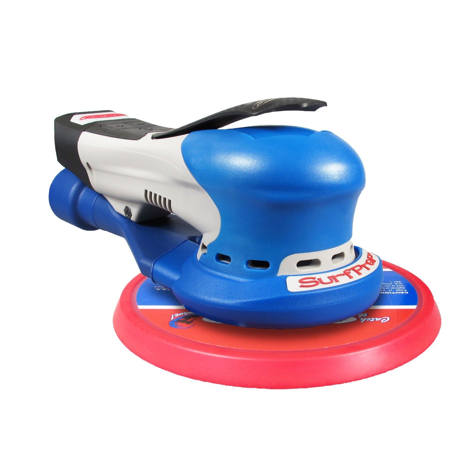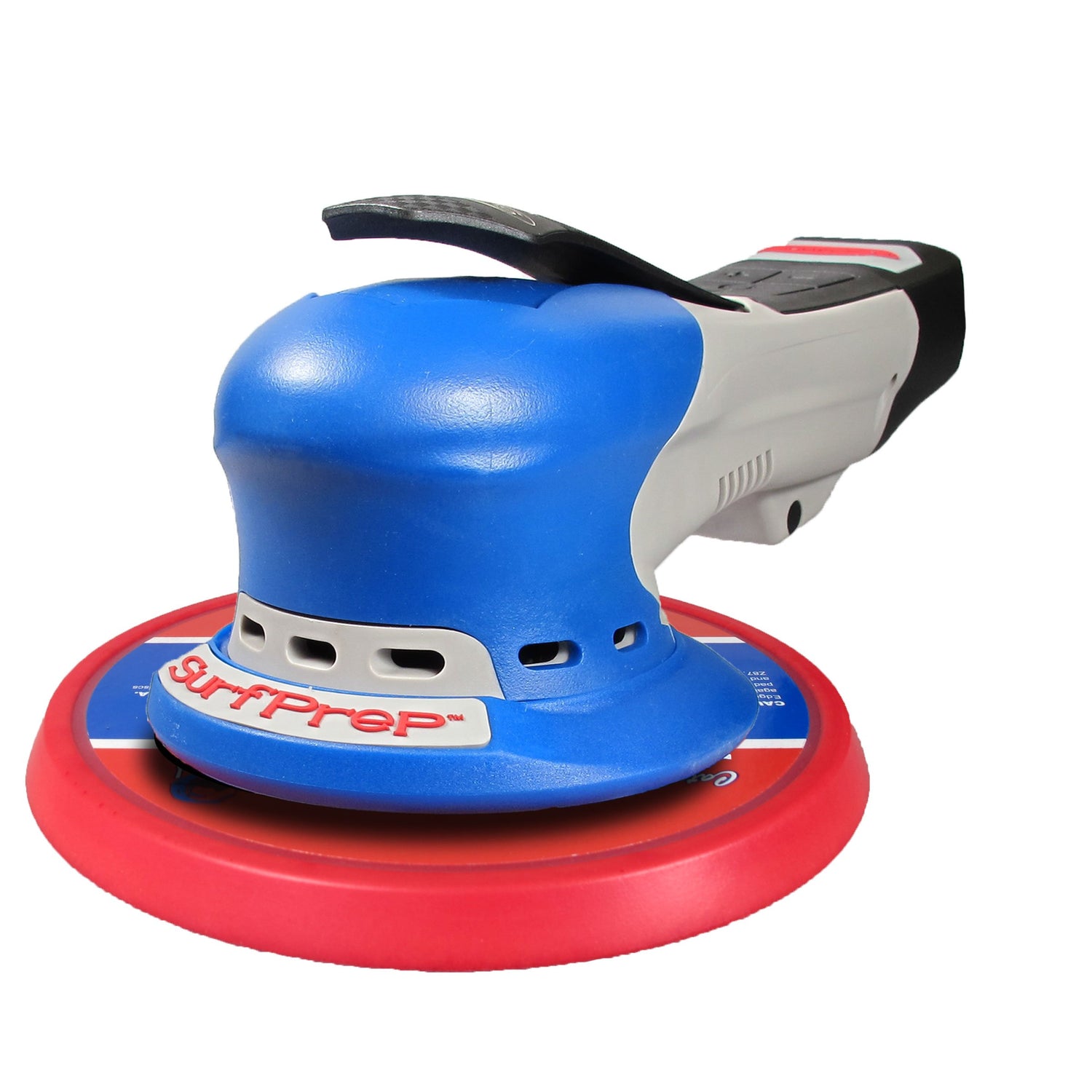 SurfPrep’s 6” ‘brushless’ electric sander is the lowest profile, operator friendly, power packed, energy efficient random orbital sander. Lightweight at just 2.5 pounds. The Ray allows operators to sand ‘on-site’ because the tool plugs directly into a standard electric outlet. The power supply is built in the tool with a ‘direct wire’ design that allows for easy set up and operation (no external power supply box / plugs directly into outlet). Annual electricity costs for operating the 6” 4 hour/day, 240 days/year at $0.0007 kWh is just over $20.00 per year. These tools are available in 3/16” & 3/32” orbits. Central vacuum option available to maintain a clean working environment. The rate of cut & power of the Surge puts the sander in a class of its own!