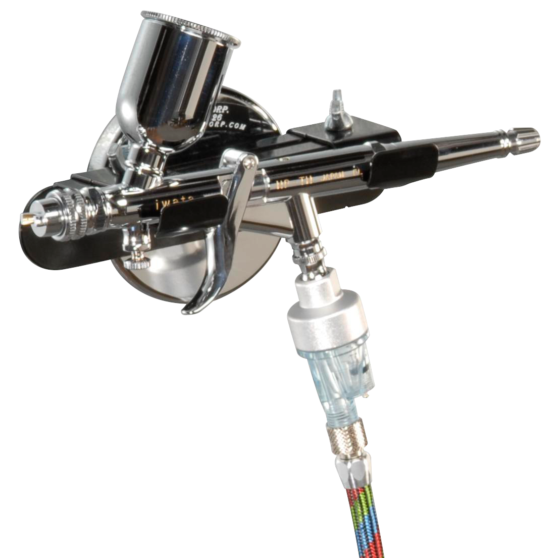 Description: The Air-Port Hanger, by Karajen Corp, will hang most styles of airbrushes. Its adjustable hanging positions accommodate airbrushes of all sizes, shapes, and feed types (gravity, siphon, side-feed, etc.).