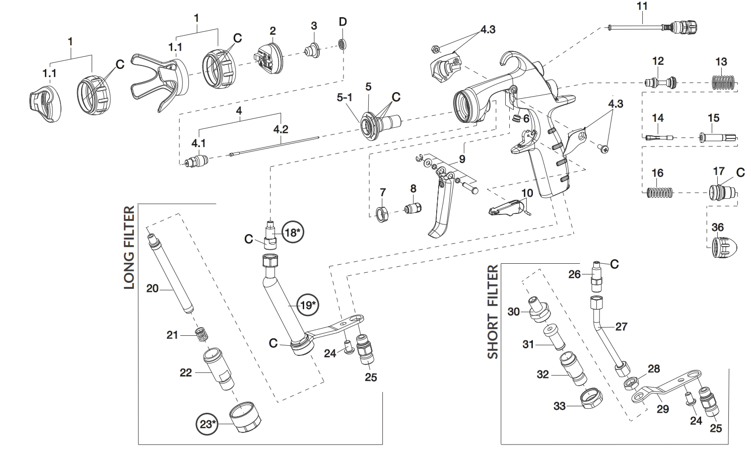 Description: Packing Set for MSGS Series Spray Guns. 8pcs./1pk. Ref. No. C