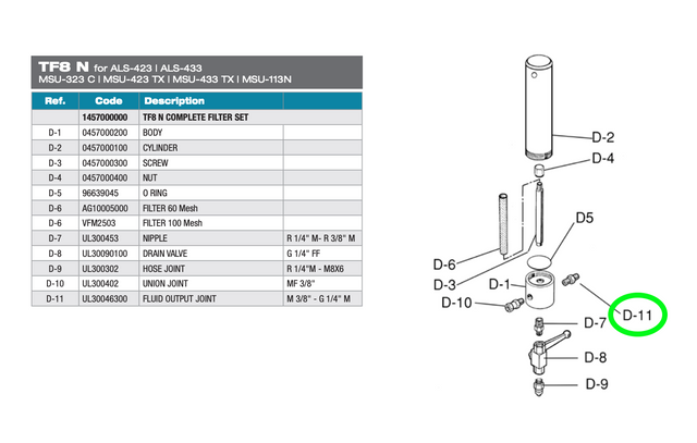 Description: TF8-N Fluid Output Joint, D-11 in diagram