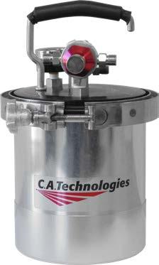 Description: The Bandit from C.A.T. is by far the best 2 quart in the industry and at the right price. The band clamp offers 360 degrees of sealing pressure with the turn of one knob, no threads to stick and no multiple lid knobs to turn. It comes with a rigid liner for quick color change and cleaning. The underside of the lid, fittings, and fluid tube are all 300 series stainless steel and include a splash guard so you don’t have to worry about waterborne materials or corrosion. The wide lid opening makes filling and refilling a snap. The Bandit offers all the features you need in a 2 quart. Also available with an air-driven rotary agitator that includes a stainless shaft and propeller.