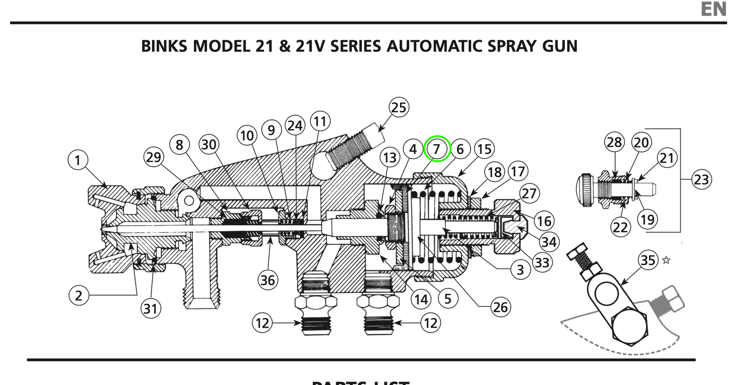 Binks Leather Plunger Model 21, 21V, 21M Automatic Gun