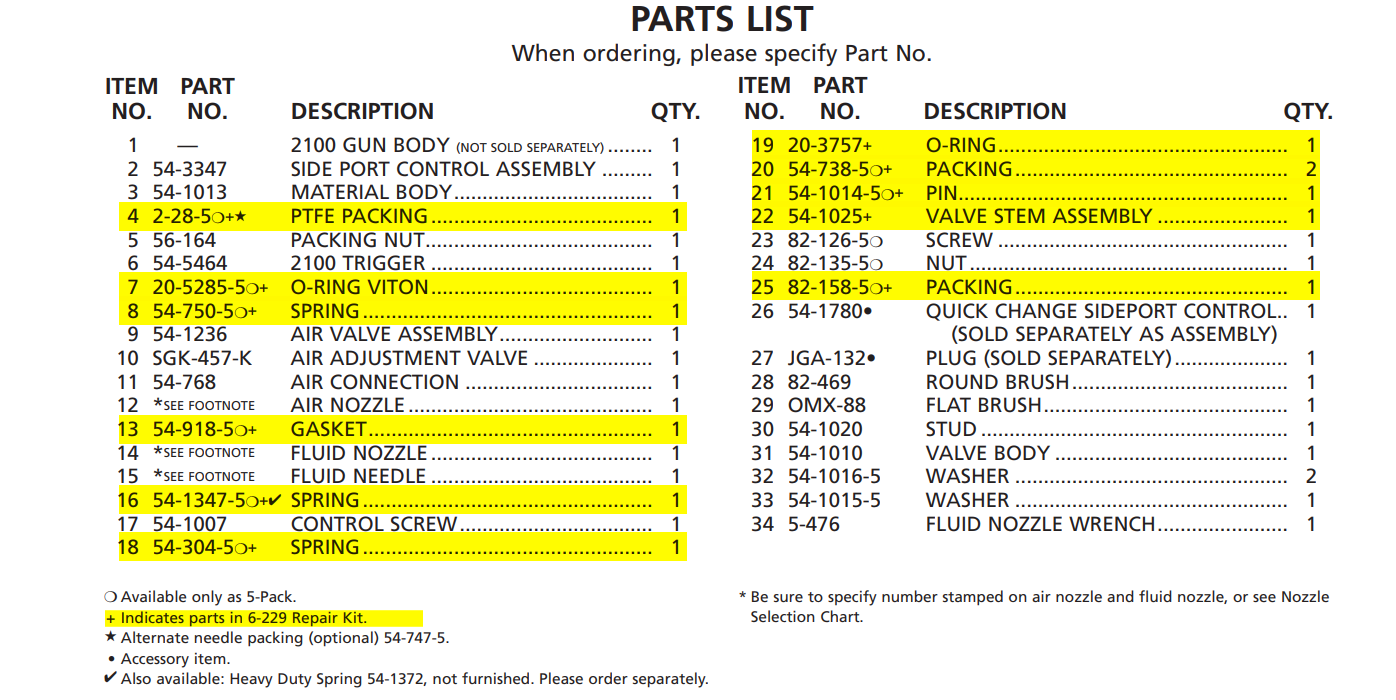 Binks Repair Kit 2100/2001 Gun is backordered and will ship as soon as it is back in stock.