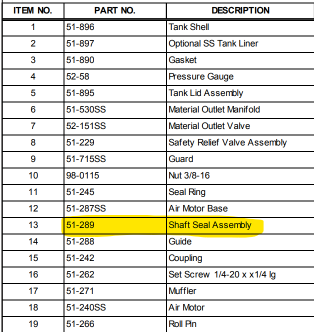 Description: Packing set for agitated tanks. Ref. No. 13