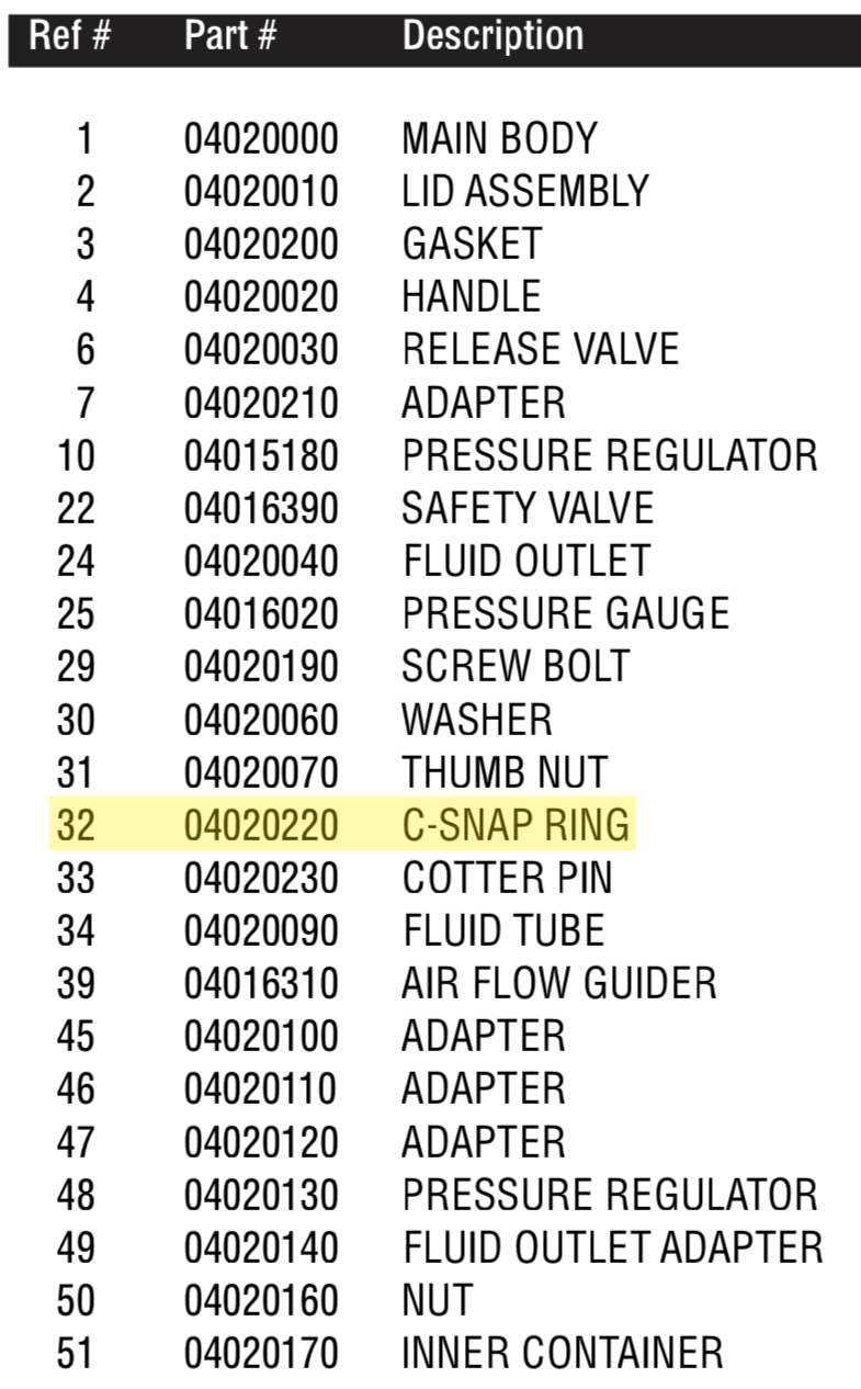 Description: C-Snap Ring for PET10 Pressure Pot