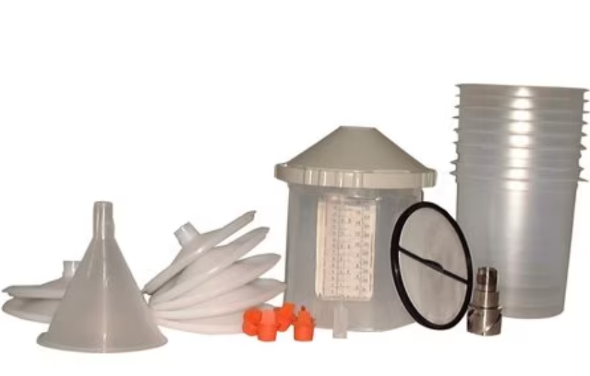 Description: Demo kit for the DeVilbiss DeKups® disposable paint cup system. Includes several different paint filters and the 24 oz. cup size (possible sizes are 9, 24, and 34 oz) to give you a solid feel of how the DeKups® system performs. Click HERE for the full DeKups® lineup! Kit includes the following components: