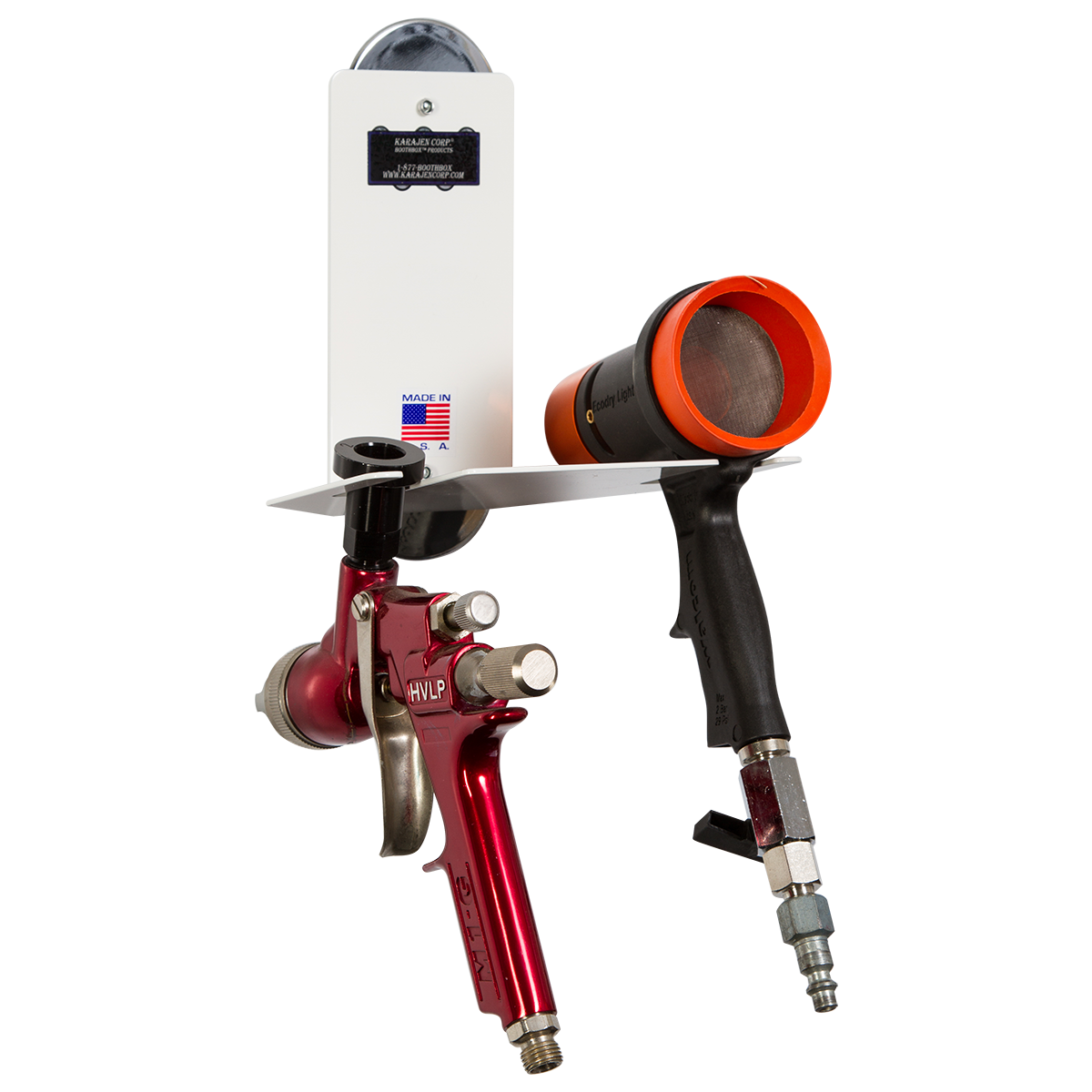 Standard spray guns (with traditional aluminum or plastic cups) and most air blowers/amps are also compatible with the Double GunHanger.
