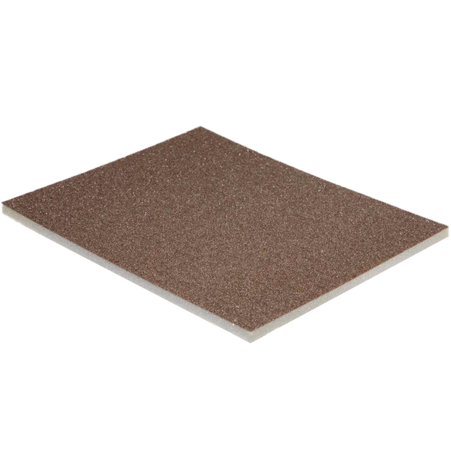 Size: 5½” X 4½” X 3⁄16” This soft backed single sided pad is highly flexible and resistant to loading. It features the same exact benefits as those found in our 2-sided brown soft hand pad. Great for both white/raw wood sanding and sealer/finish sanding. Cuts quicker with less pressure minimizing operator fatigue.