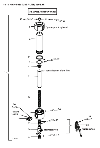 Description: Wagner HP filter DN12-PN530-CS, complete (530 Bar / 7687 psi)
