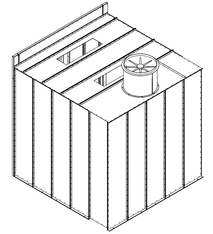 - Ducting kit for spray booth exhaust system. (2) Plain duct, (1) Service door duct, (1) Flashing for roof and (1) auto butterfly damper cap (12' Total of Ducting)