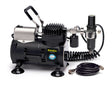 Iwata Smart Jet comes with a high strength polyurethane airbrush hose for Iwata airbrushes. Also included are air hose adaptors for Badger, Aztek and Paasche brand airbrushes, a replacement air intake filter and a detailed operation manual.