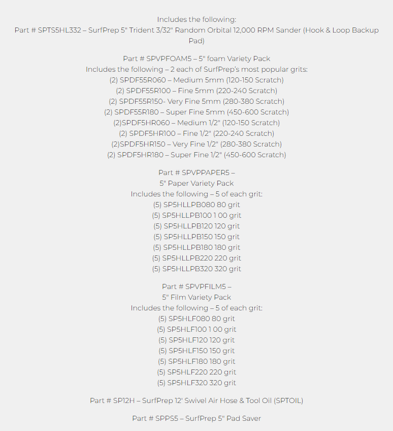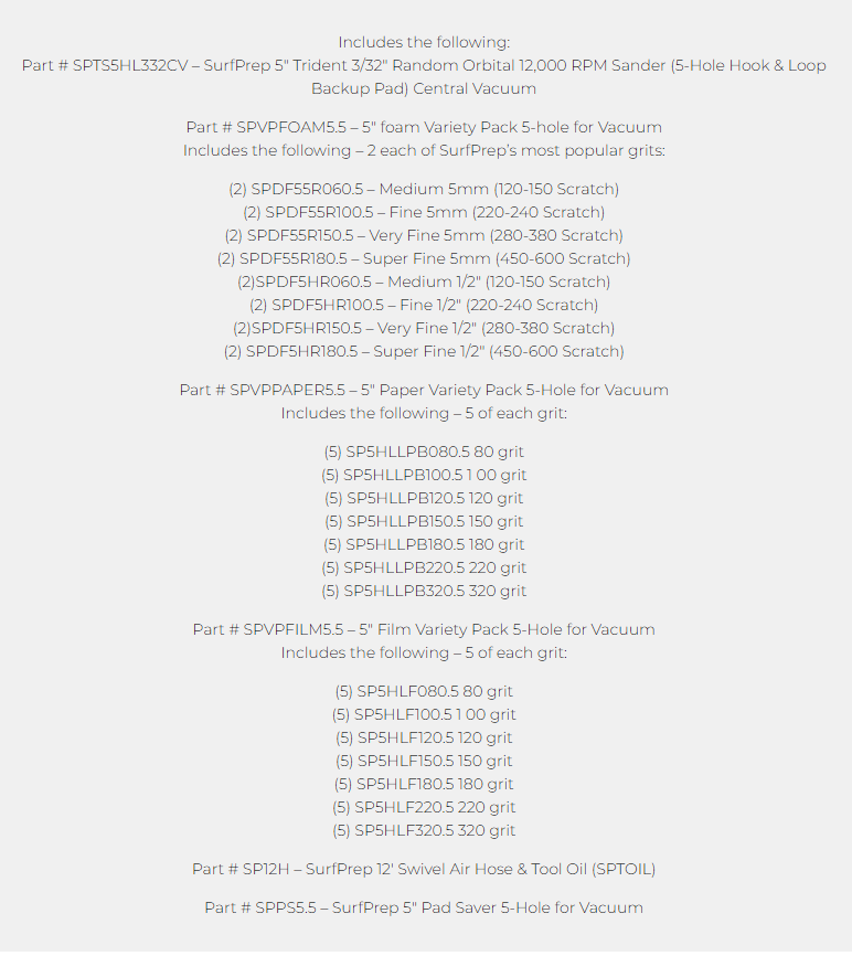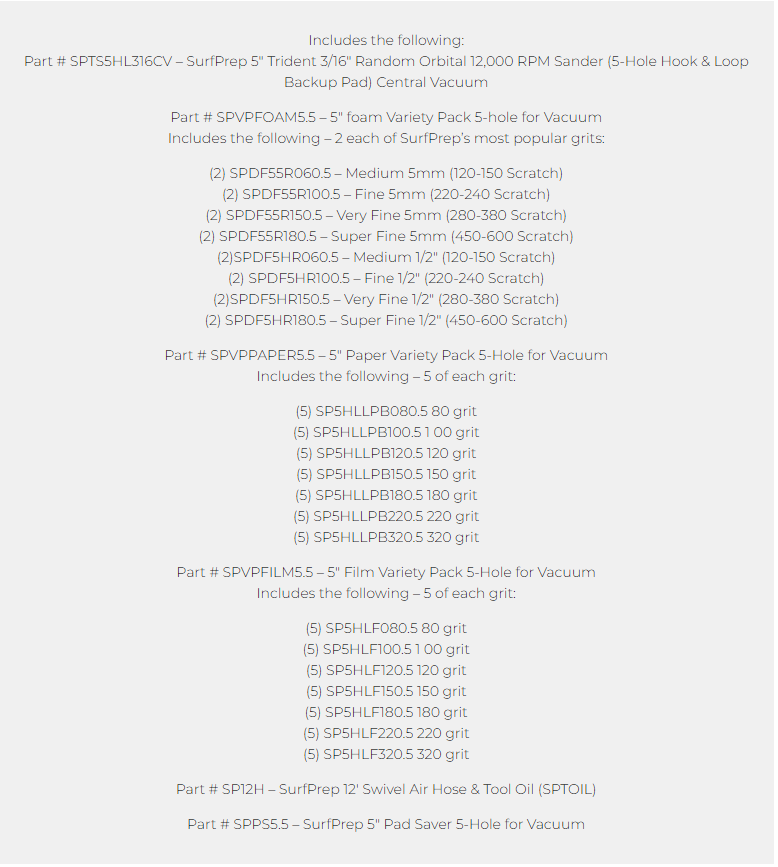 SurfPrep 5" Trident Air Sanding System Kits - Choose Type is backordered and will ship as soon as it is back in stock.