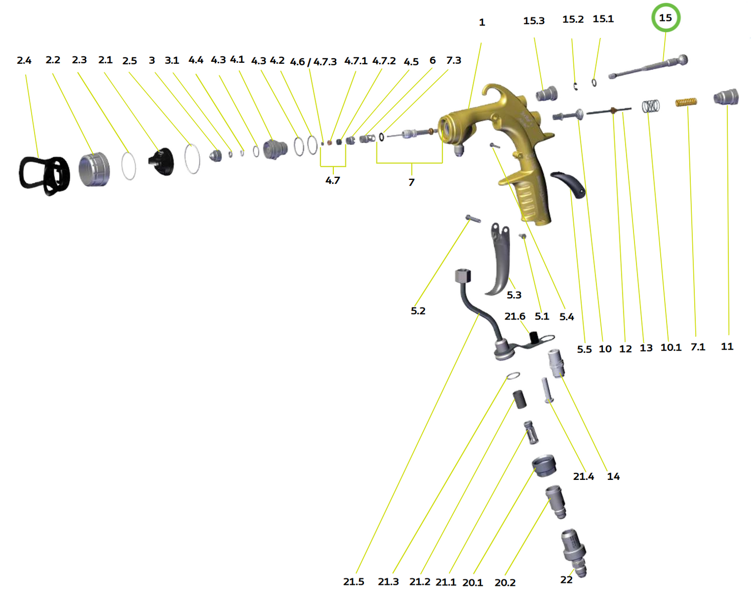 Description: Xcite® Assembled Air Needle. for AIRMIX® XCITE®+ Manual Spray Gun. Ref. No. 15.