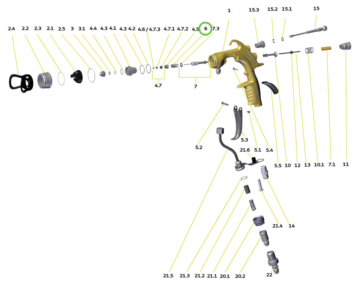 Description: Xcite®+ Cartridge Stop (package of 5) for AIRMIX® XCITE®+ Manual Spray Gun. Ref. No. 6