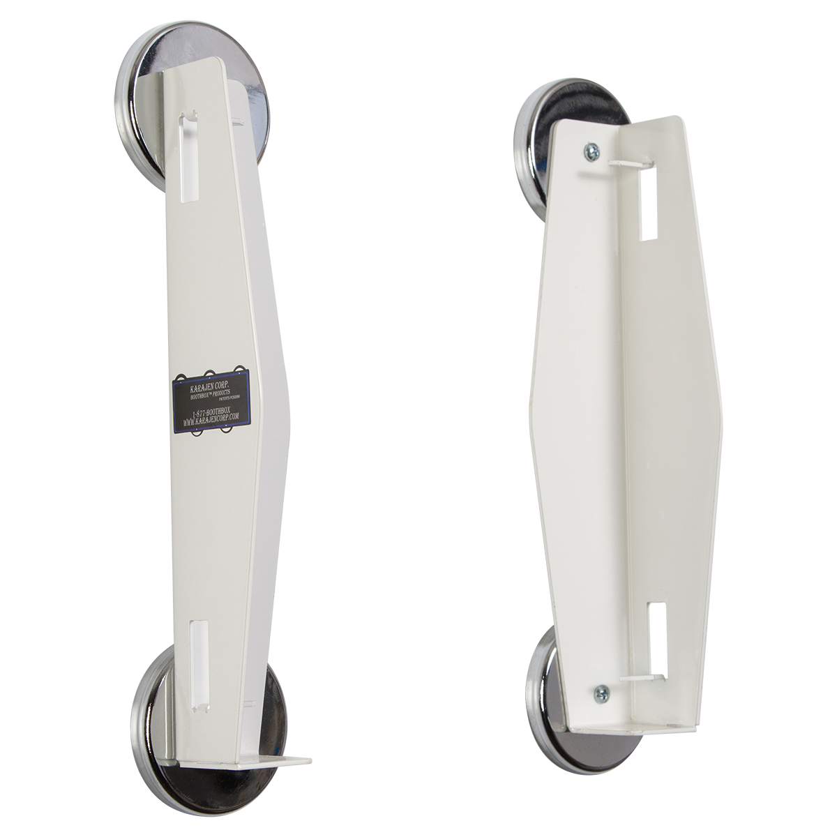 Description: Hang your cleaning/degreasing towel box on any metal surface, while still in its original cardboard packaging or dispensing box.