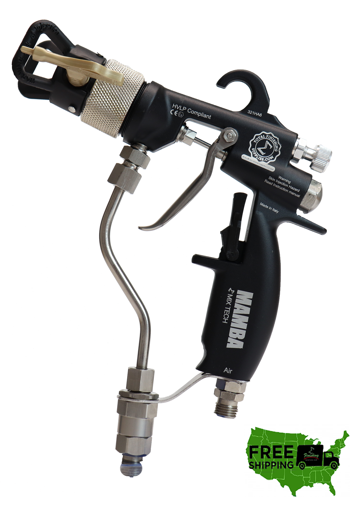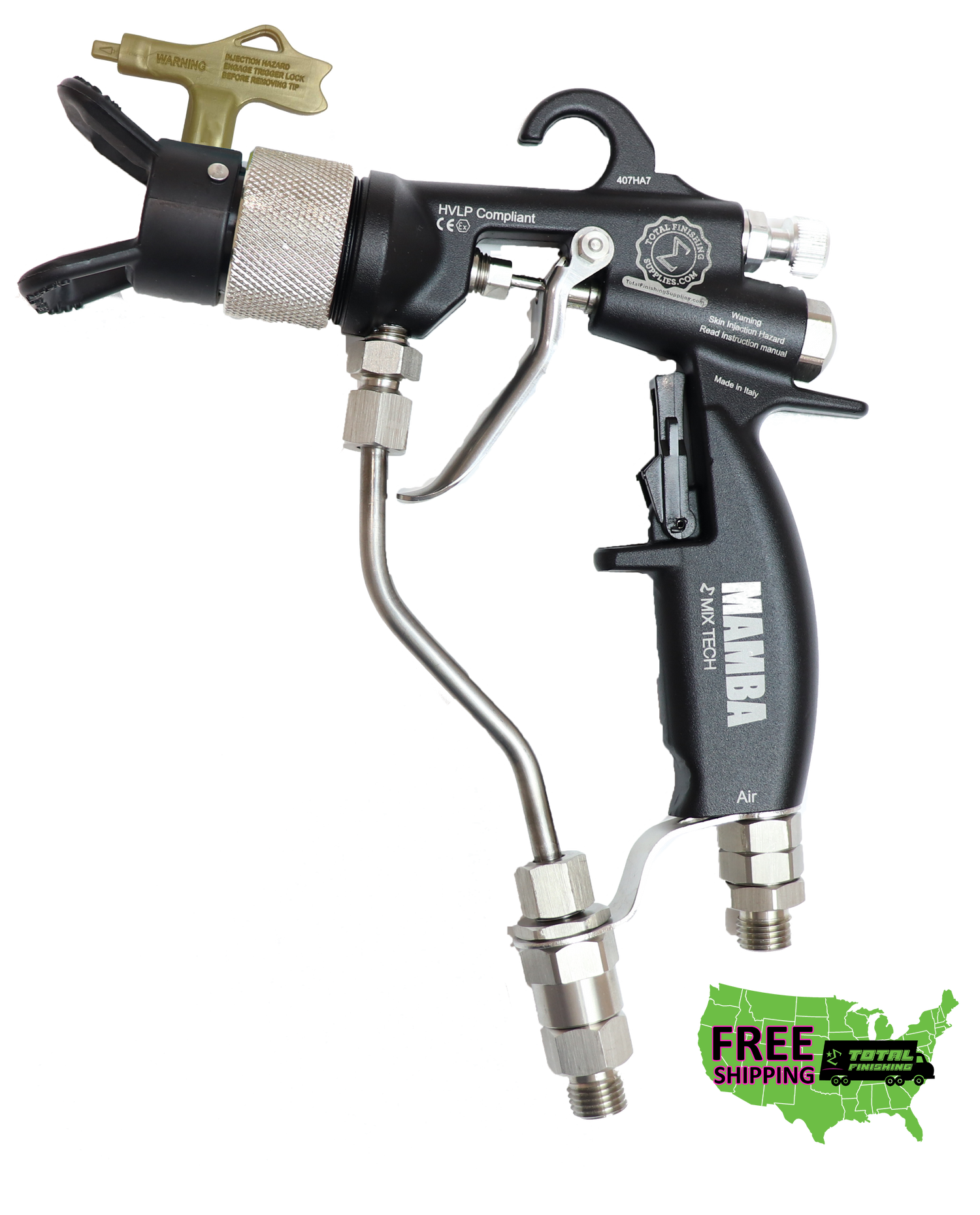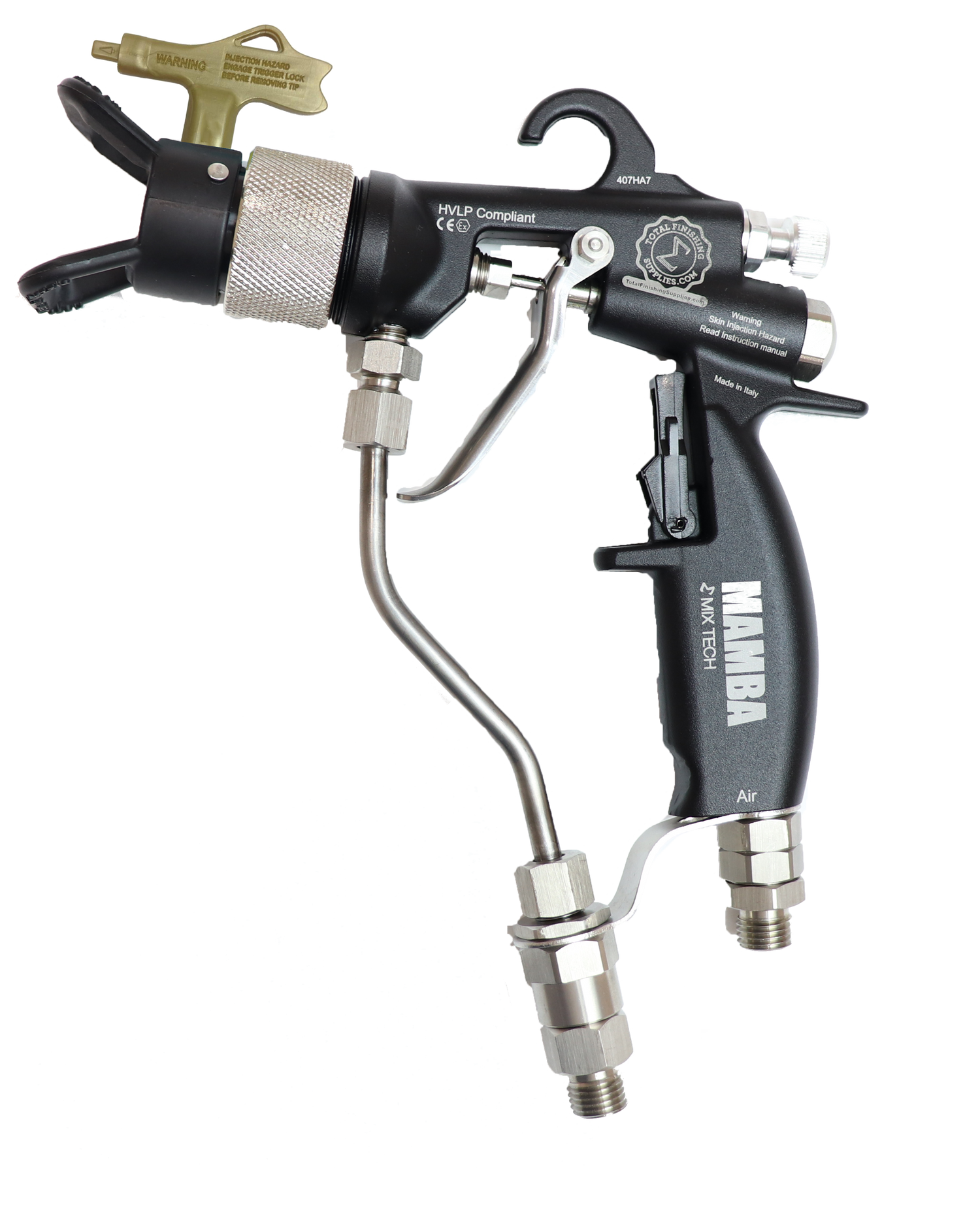 Description: The MAMBA® Mix Tech 200 bar (2900PSI) manual spray gun delivers exceptional performance, value, and finish quality. With a high transfer efficiency, the MAMBA® Mix Tech competes with other much higher-priced Graco® G40 RAC™ and G15 RAC™ spray guns.