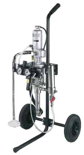 The fluid passages of this pump and spray gun are made of stainless steel and are ideal for applications requiring waterborne or solvent-borne materials.