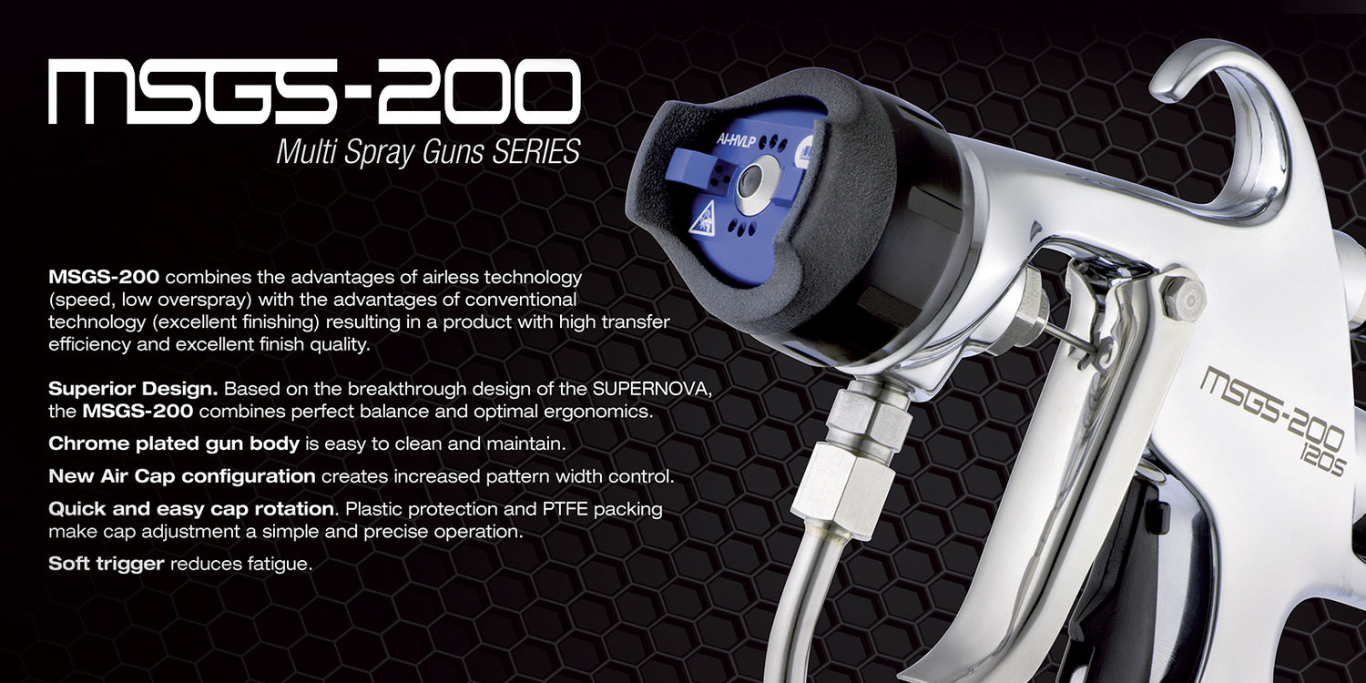 Description: The 13:1 stainless steel MSU11N multi-spray system combines the advantages of air spray and airless spray to suit a wide range of applications. A double-action pump minimizes pulsation and reduces wear on pump components. The system is available in three different configurations: