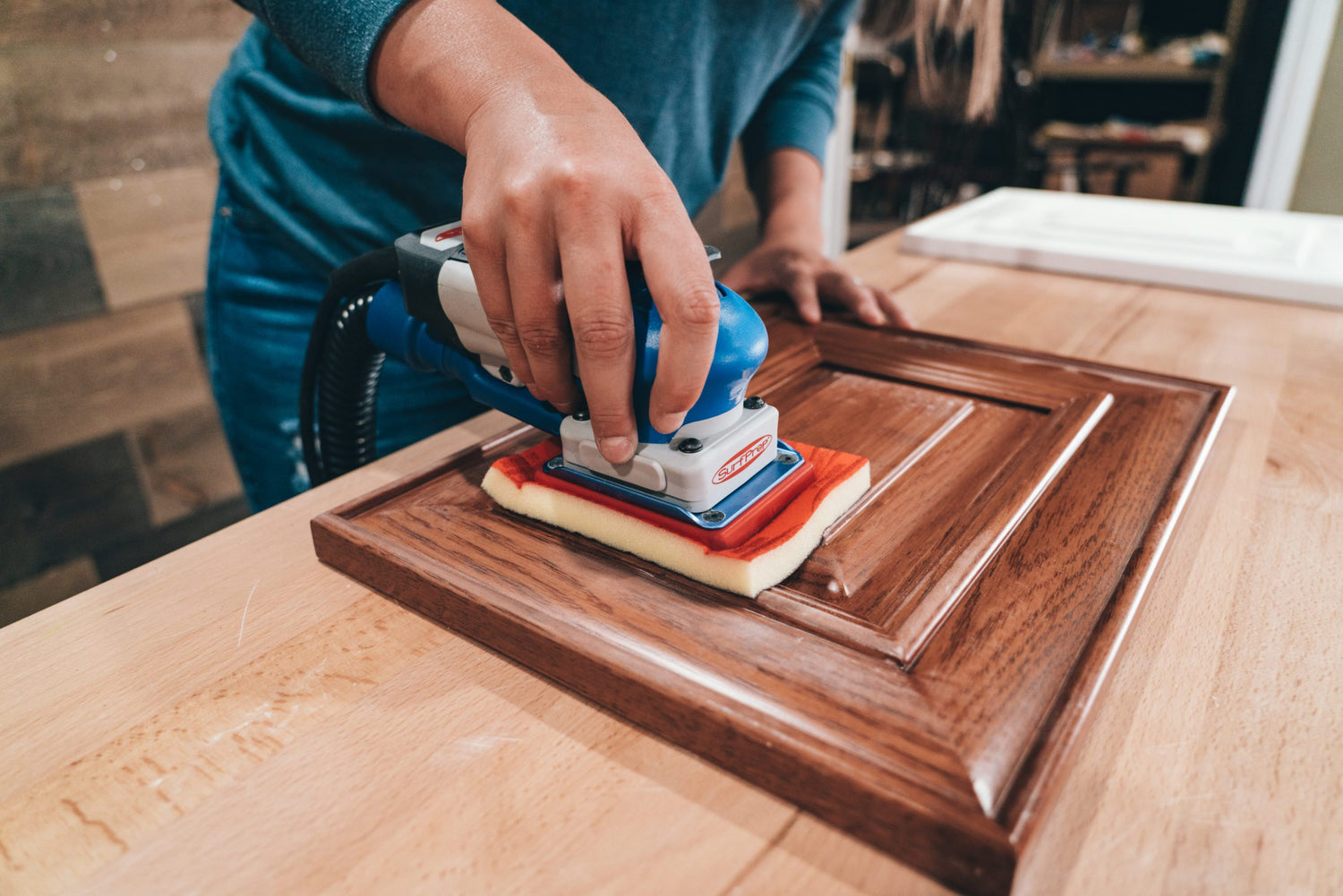 SurfPrep 1/2″ Red Aluminum Oxide Foam Hook & Loop Pads are an excellent choice for preparing any surface that requires soft flexibility in order to ride over profiles so as not to cut or burn through lines or finishes. A great choice by cabinet makers who have challenges sanding or polishing the joint location of molding on a miter door. This pad will not load or pill.