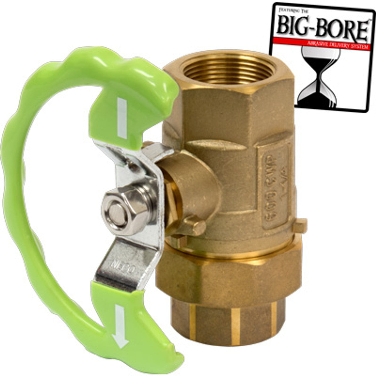 Using union-end ball valves to connect your metering valve to your bulk pot provides easy removal of the valve without dumping abrasive.