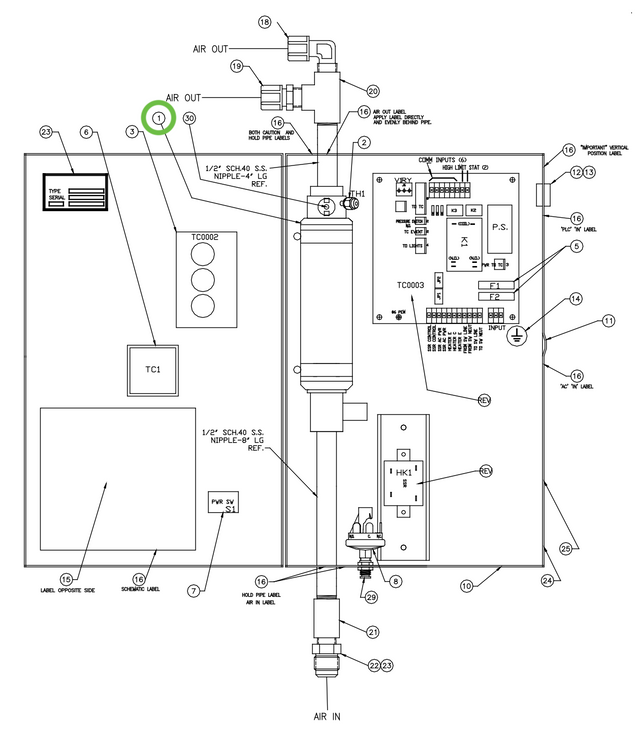 Description: Cool Touch In-Line Air Heater. Ref. No. 1 in diagram. Part of the Ransburg A11065-05 Heater Assembly.