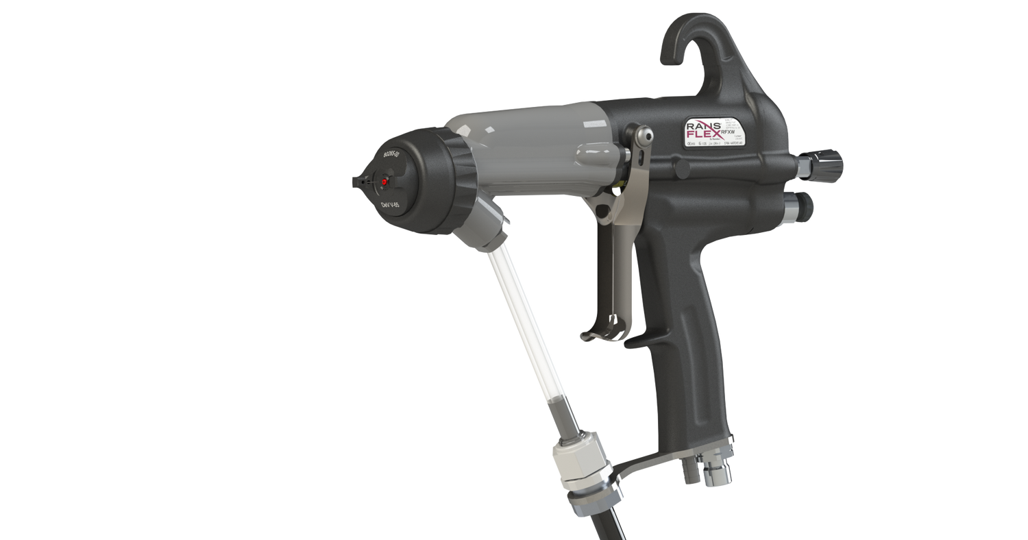 The RansFlex RFXW is an air electrostatic waterborne spray gun. RansFlex applicator offers "best in class" atomization in a compact, lightweight applicator for spraying waterborne materials.