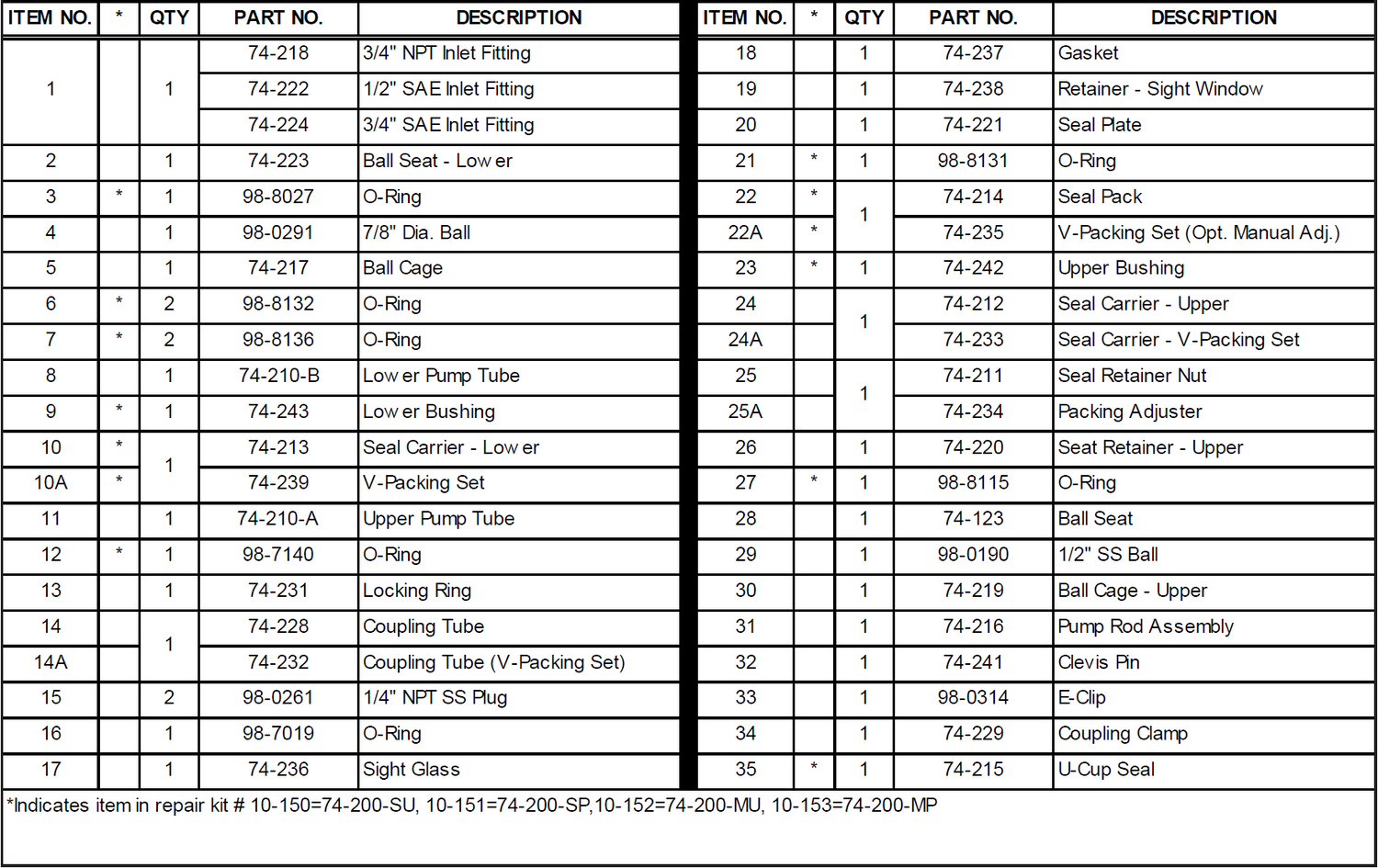 Description: 74-200-SU REPAIR KIT