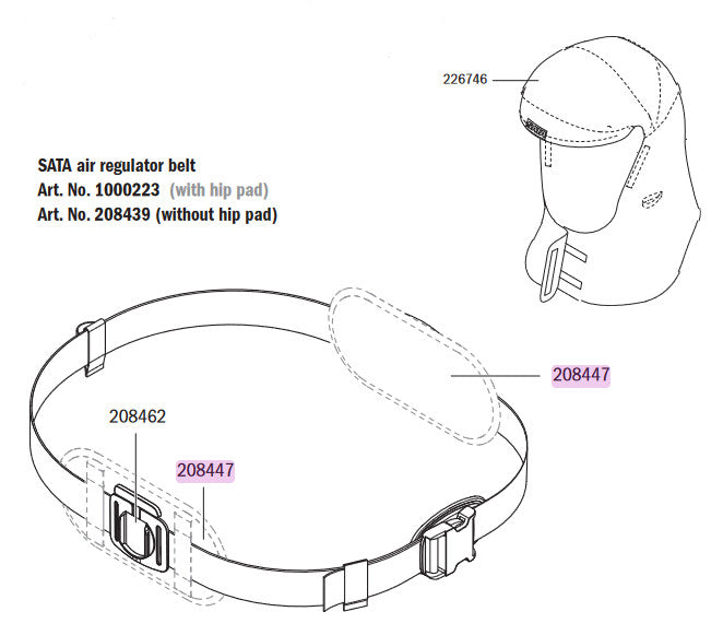 Description: The SATA air vision 5000 offers complete head and breathing air protection against solvent vapor and isocyanates, puts the focus on effective health protection and lets you experience a whole new and comfortable way of breathing, due to a completely re-designed breathing air supply system. SATA air regulator belt with SATA air regulator (no charcoal) to be used in combination with wall-mounted three-stage filter regulator units, e.g. SATA filter 484 or 284. It’s very comfortable to wear and has a tip-up visor. Supplied air respirator hood with very high wearing comfort and optimum hygiene. The system perfectly complies with painters' requirements and protects their respiratory tracts, eyes, skin and hair (especially important for the application of waterborne paints). High breathing air quality due to an air supply which is independent from the ambient air, no inhalation resistance, high breathing comfort.