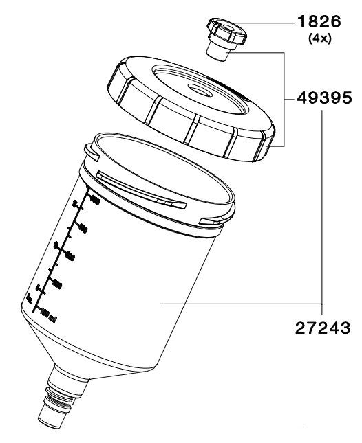 SATA pressurized gravity cups used for the application of paints and high viscosity materials. Complete with air control regulator. Gun not included