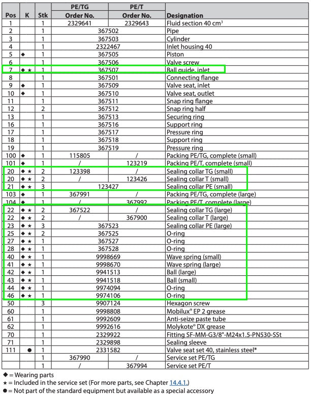 Description: Service Kit Fluid Section PE+TG