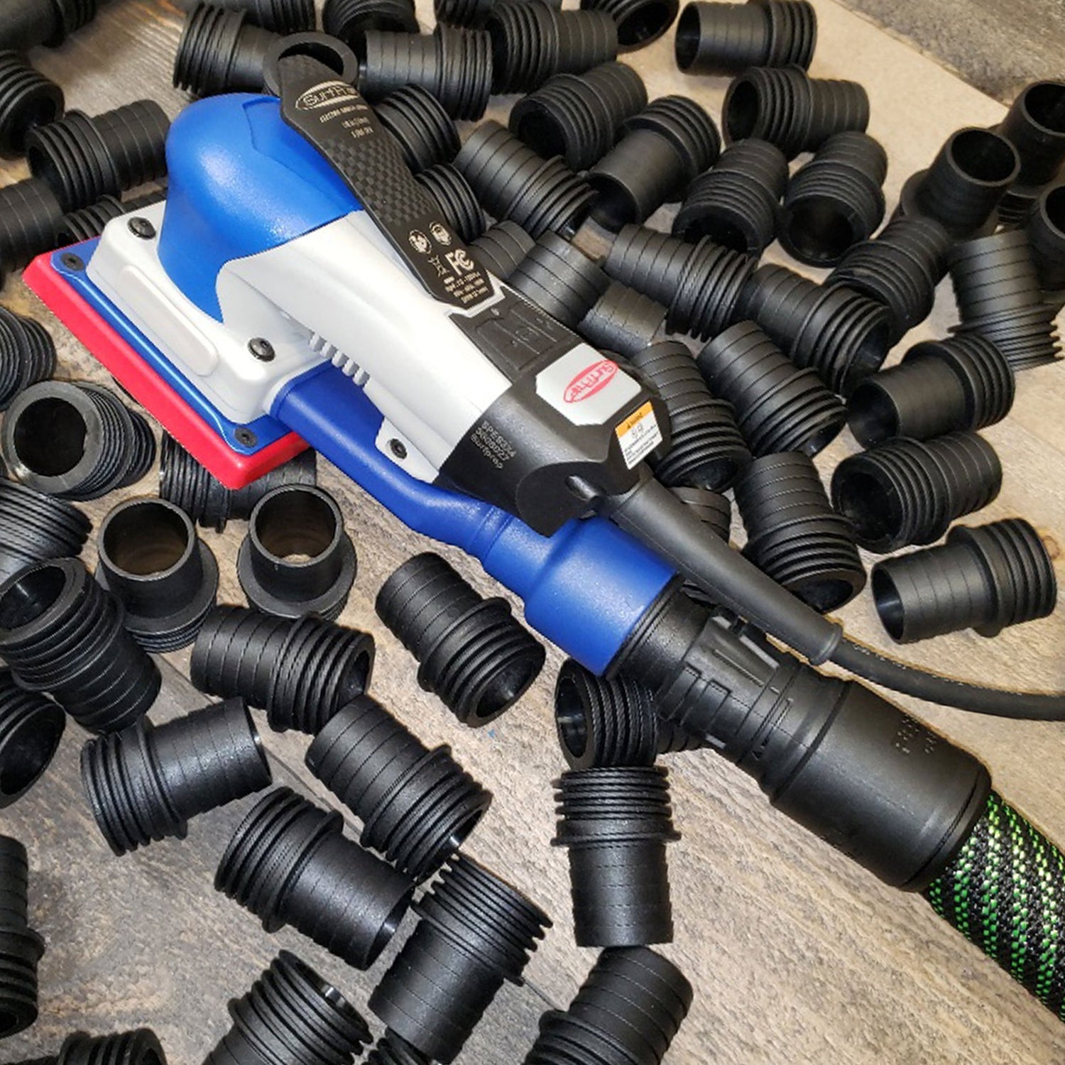 Description: SurfPrep Sanders are compatible with almost any vacuum system! Here we are showing how to use our SPUHCMF to connect any SurfPrep Central Vacuum sander to your green Festool hose. It's quick and simple!