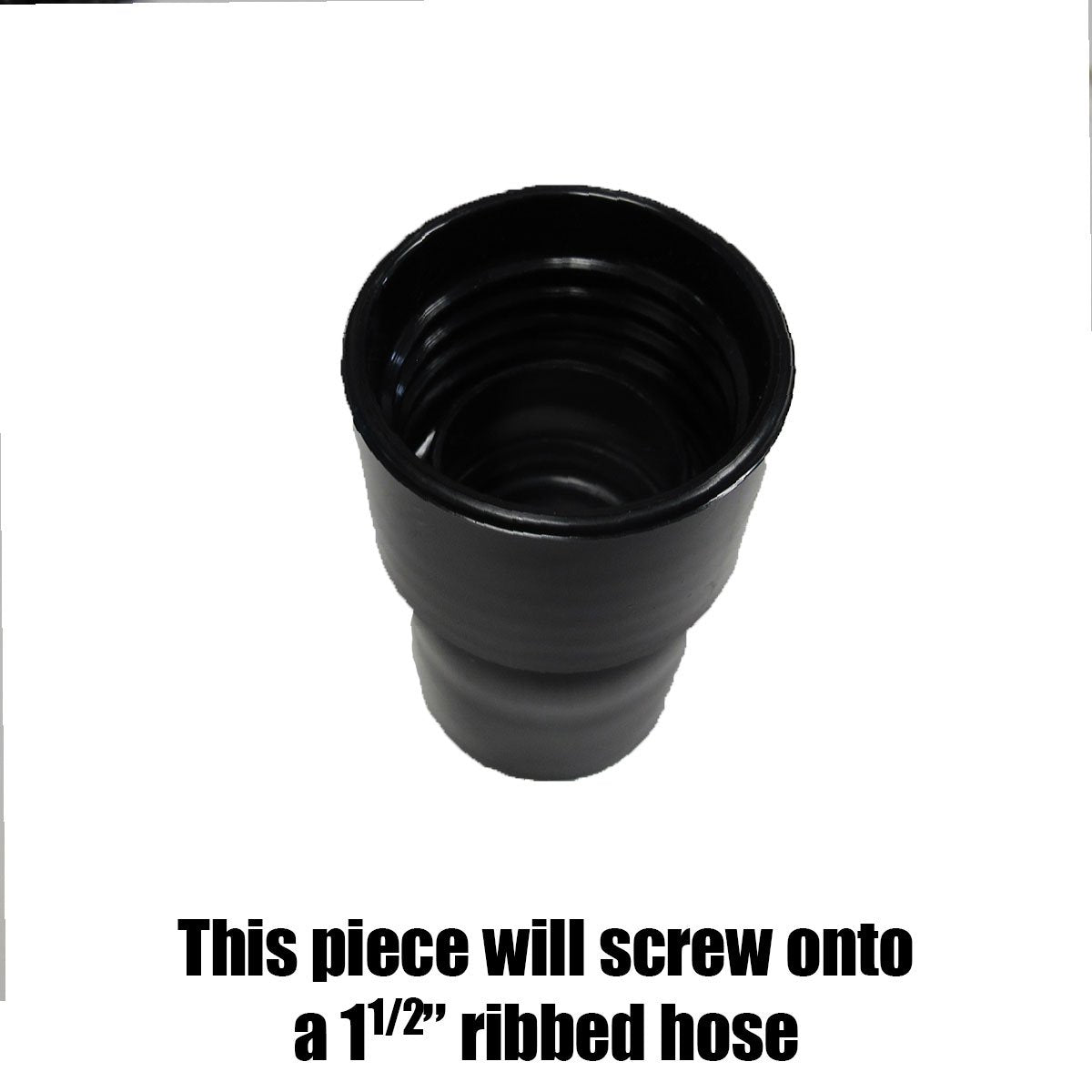 Description: This vacuum adapter piece is for anyone who owns a different brand of vacuum that comes with a 1.5" ribbed vacuum hose. We recommend purchasing SurfPrep's blue vacuum hose OR flexible whip hose to screw into this adapter piece.