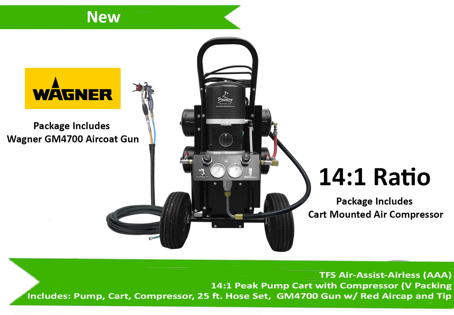 TFS Label Air-Assist-Airless (AAA) 14:1 Peak™ Pump - Cart with Compressor (V Packing) w/ GM4700 Gun