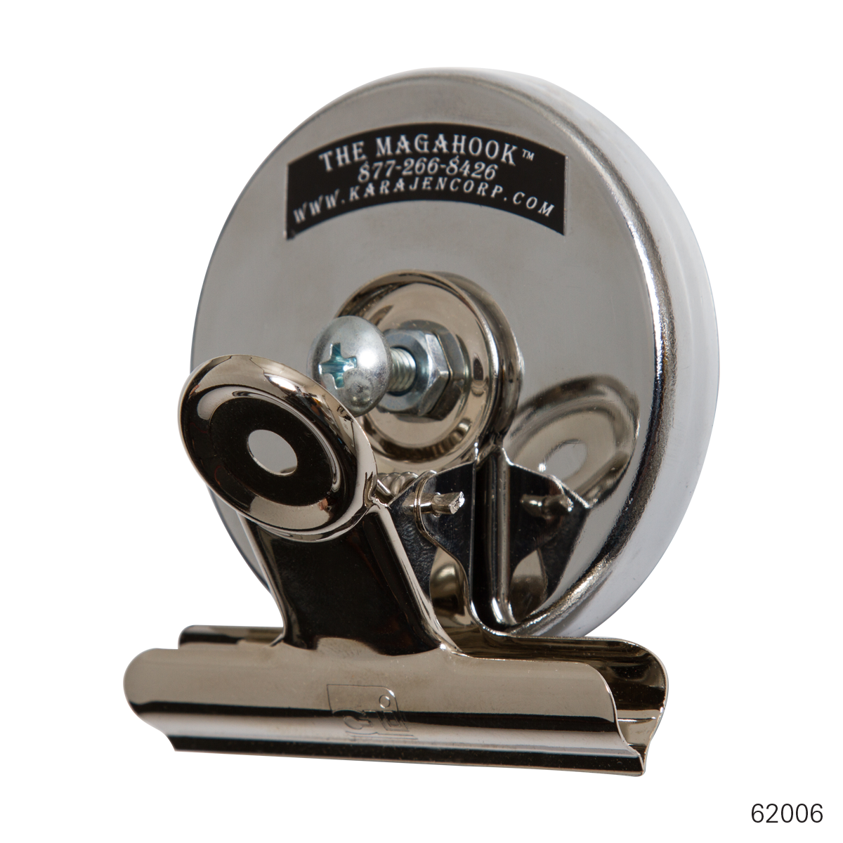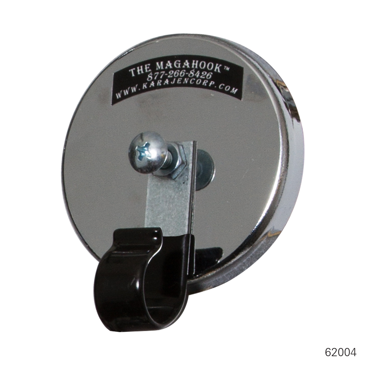 Description: The Magahooks- are uniquely designed, powerful magnetic hooks that will hang, store, and organize a variety of items on almost any metal surface. There are several models to choose from. Use on surfaces such as toolboxes, school lockers, metal doors, refrigerators, washer/dryers, warehouse racking, metal walls, parts caddies, and much more. The applications are endless.