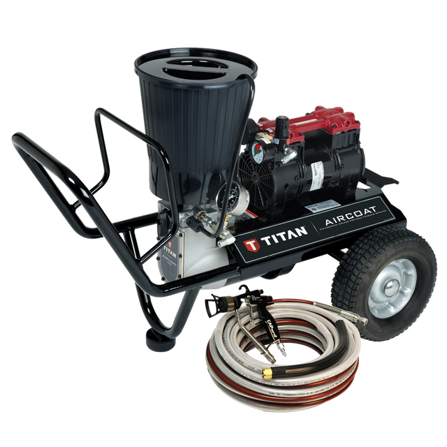 Description: Imagine combining the speed and power of an airless sprayer with the precise control of transfer efficiency of an HVLP sprayer - in a single, incredibly efficient application system. The Titan AIRCOAT™ AIR-ASSISTED AIRLESS sprayer enables you to apply coatings in an air-assisted mode to deliver ultra-fine atomization and higher transfer efficiency. Switch to airless mode and you can apply a broad range of interior and exterior coatings with the production speed you expect from Titan.