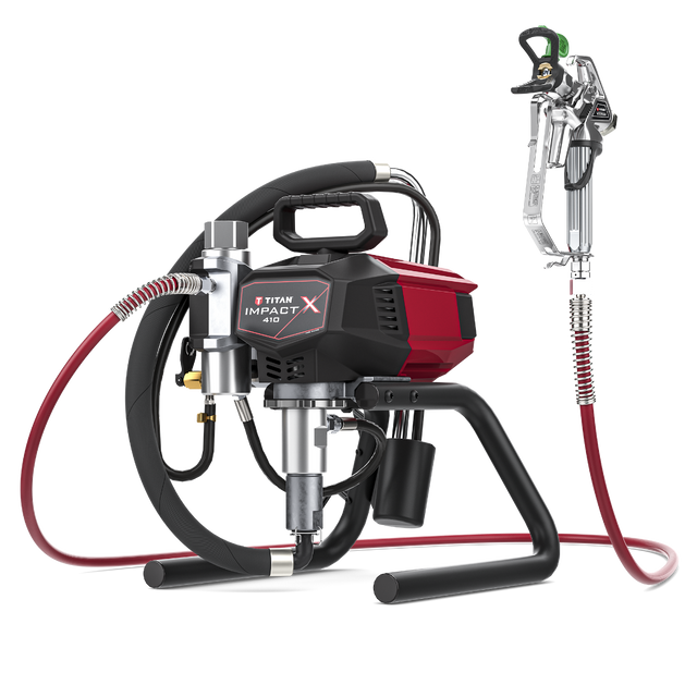 Description: The Impact X™ 410 is ideally suited for residential, property maintenance, and small commercial applications. This high performance electric airless sprayer will apply all standard architectural primer, paints and coatings efficiently.