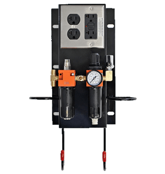 - Electrical outlets located above the air service to prevent moisture damage and tangling
